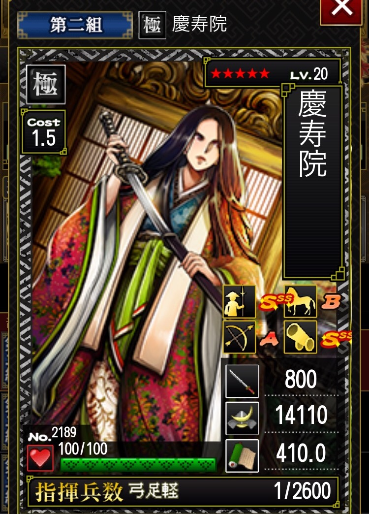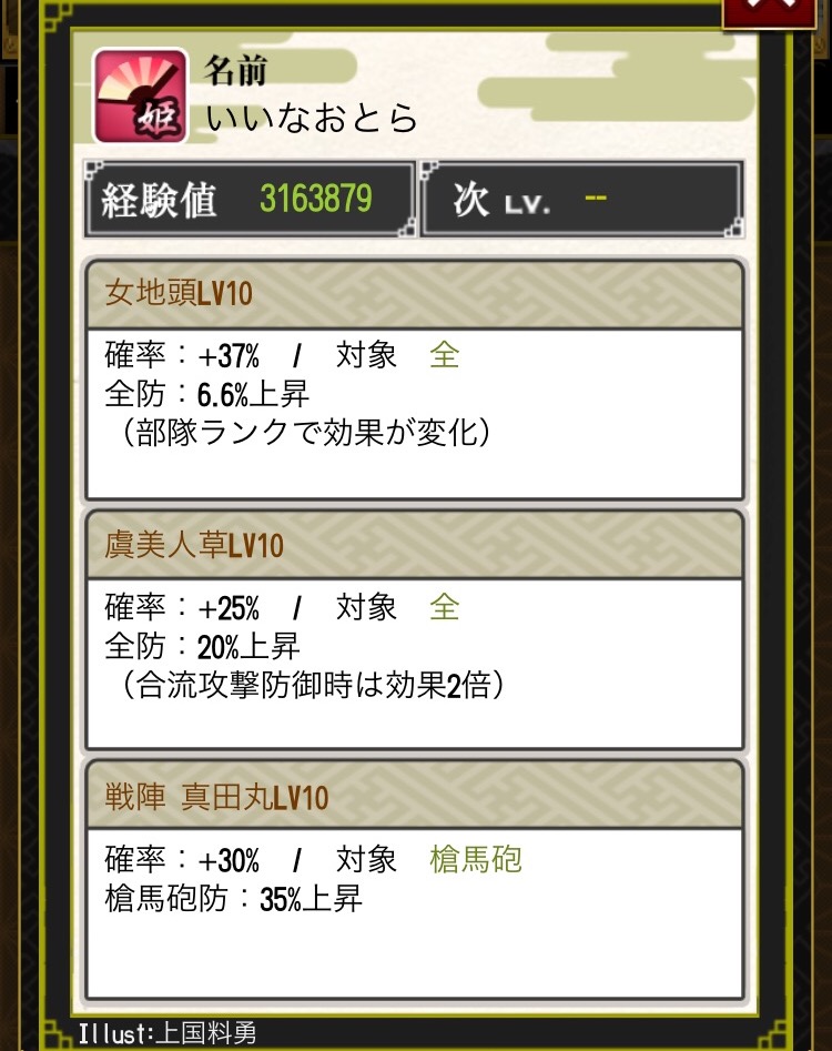 →コスト0の童を除いた全武将中、お市さんはもっともコスト比がいい武将。