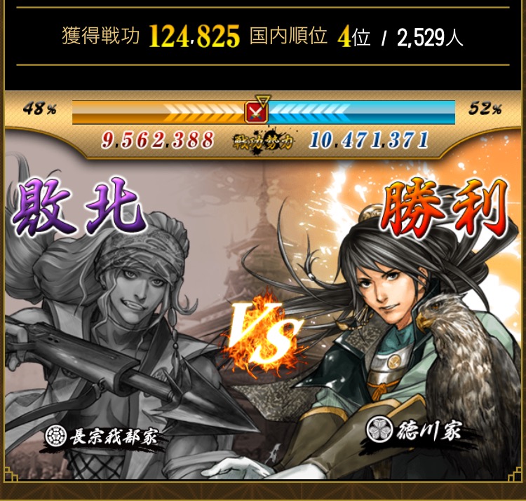 こんな感じで徳川側が勝ちました。指揮していただいた方々、メイン主力で頑張ってくれた方々ありがとうございました。