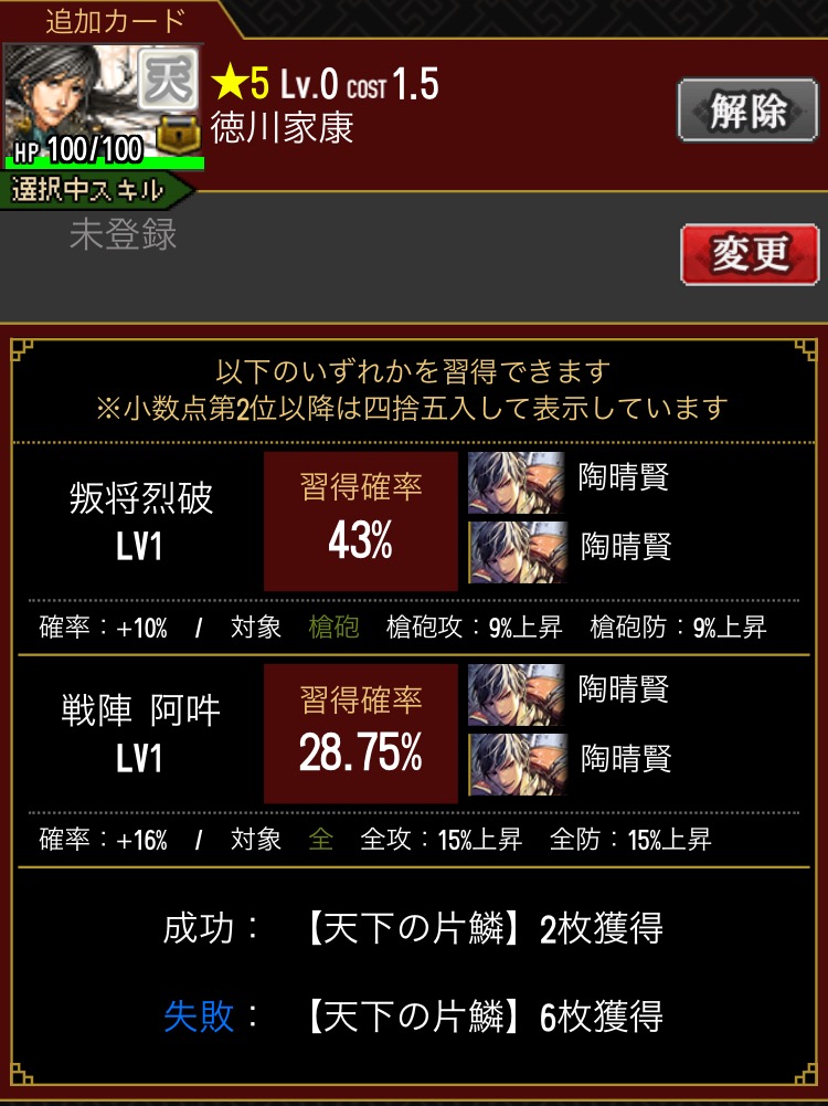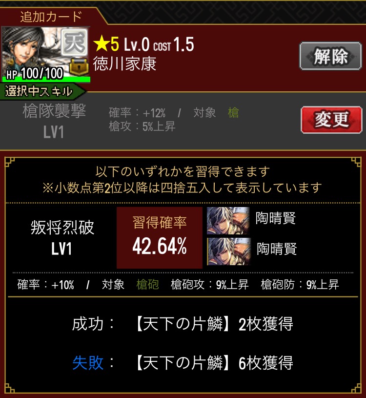 いいや、妥協スキルで暫く運用してモノマネ素材ぶつけることにしよう。藤堂と行ったらモノマネと相性いいしな。天下普請のモノマネでも他の天スキル模倣でも強いし。