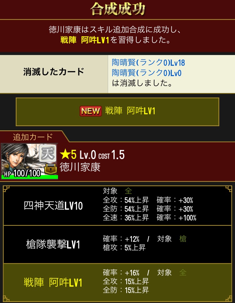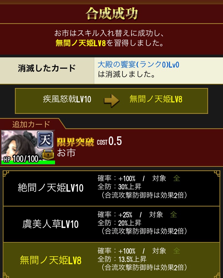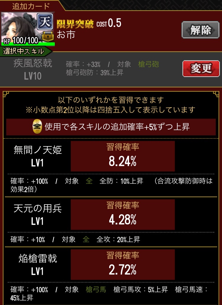 あとは攻撃ですね。石田模倣がないと獲得戦功的に割に合わなくなってきてますね。200万〜300万の攻撃力で戦功2000程度じゃ厳しい…