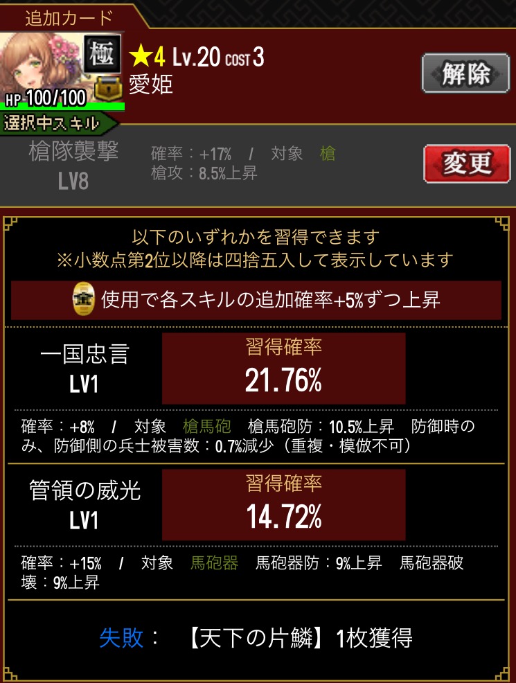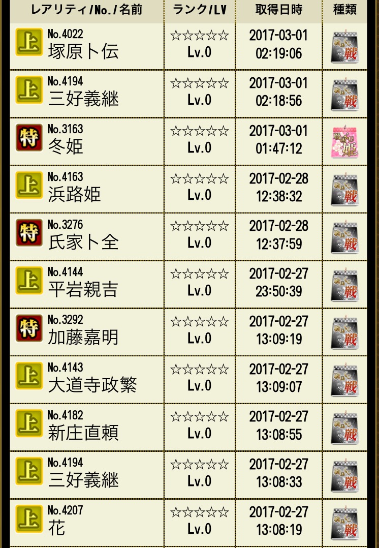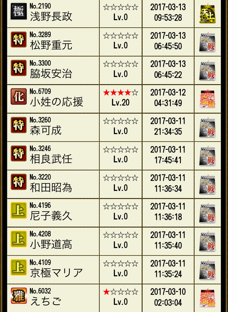 今期は初日参加しとけば天下戦功で1枚は貰えることが分かりましたので、だんだんとマッタリ〜に切り替えられればいいなと思います。