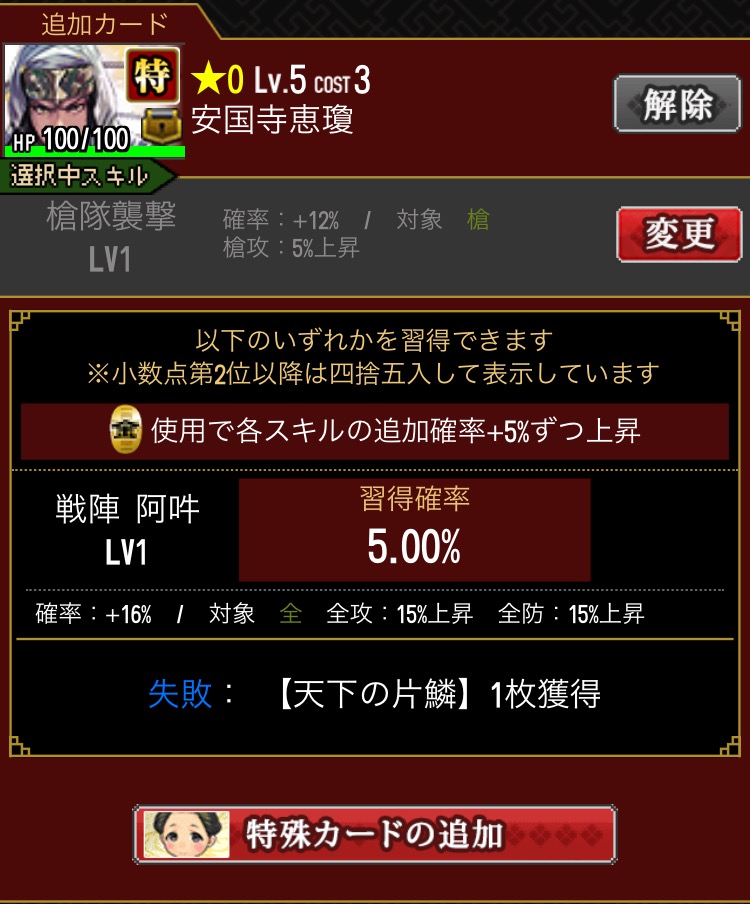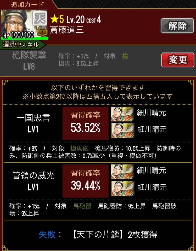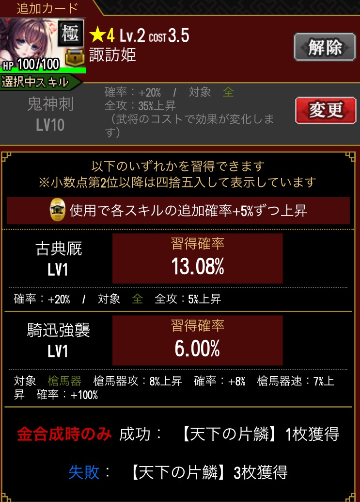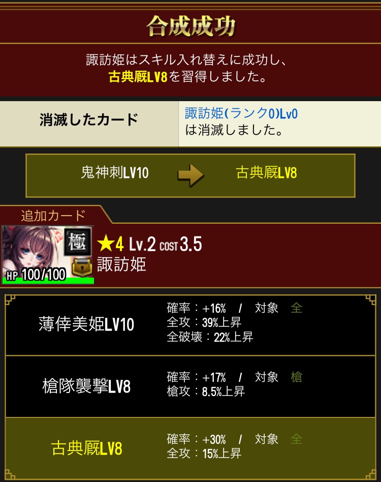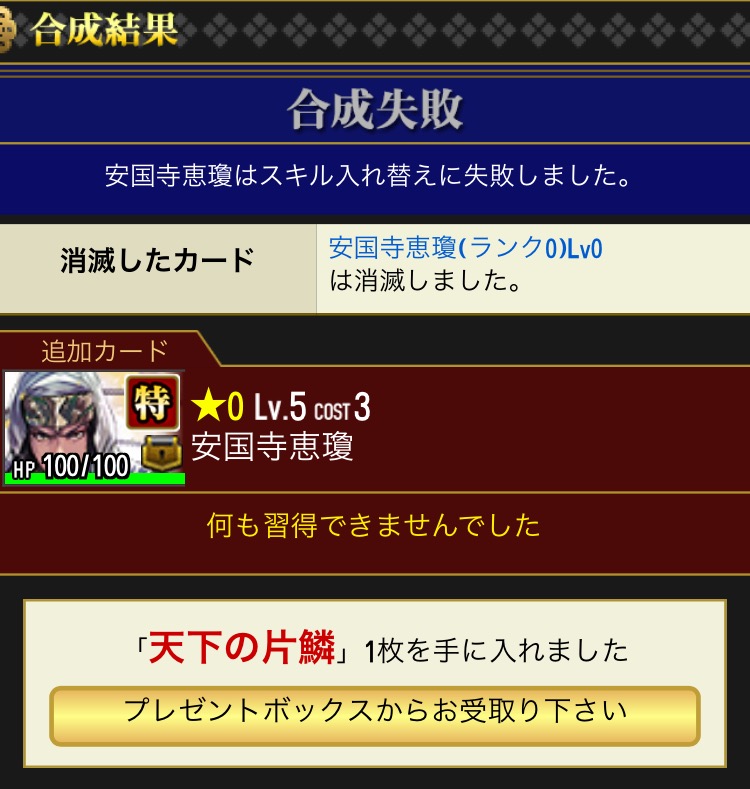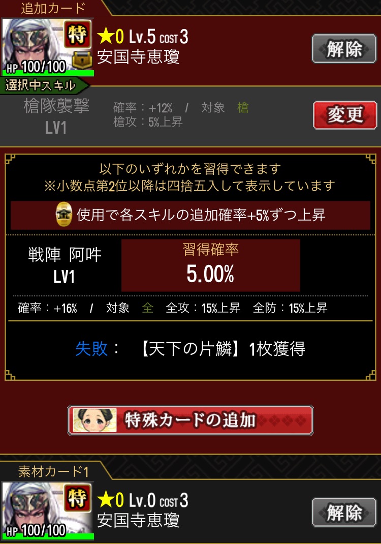 さぁ遂に素材が2枚揃ったので合戦終わりにトラァァァイ