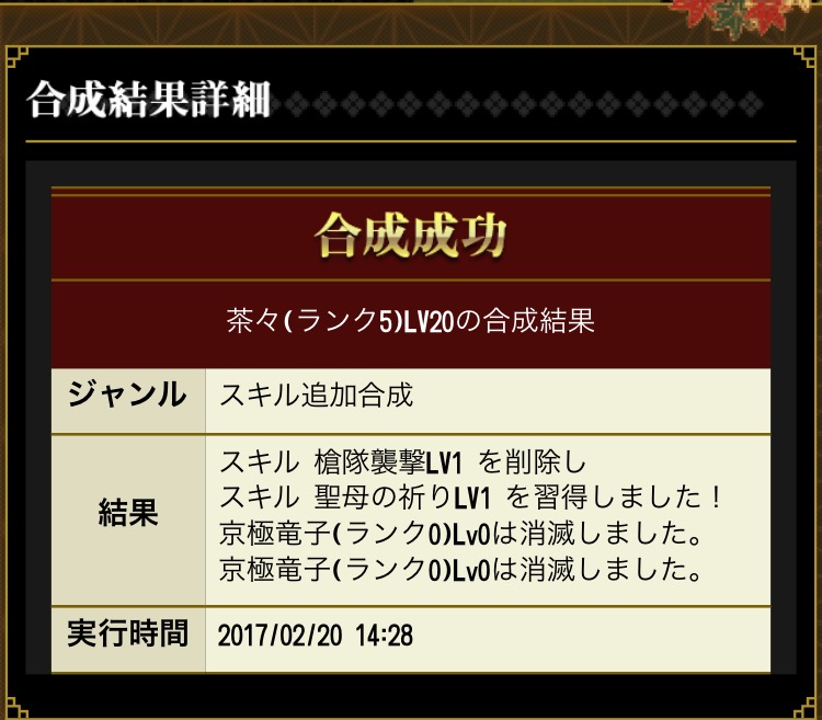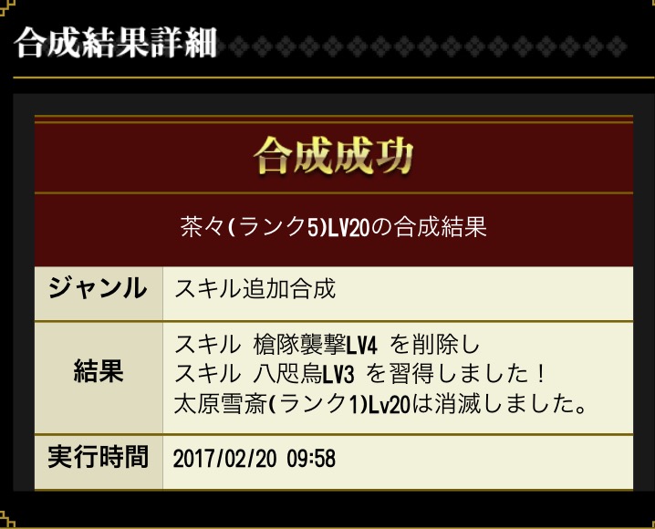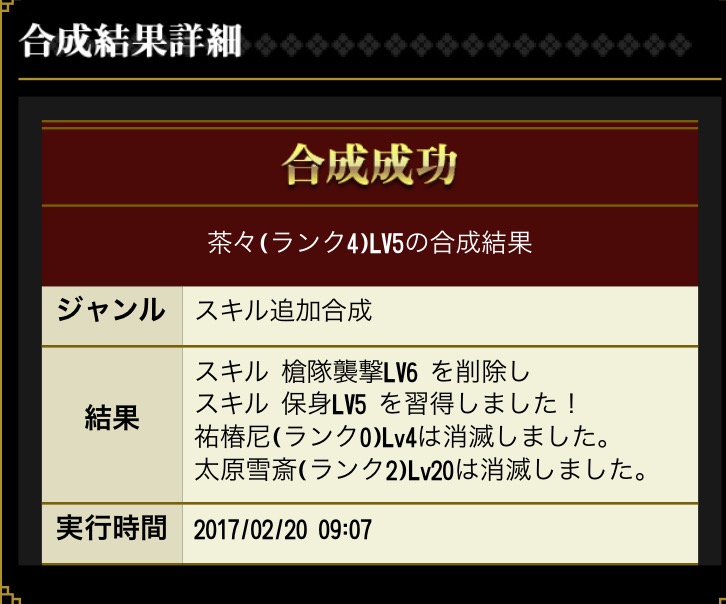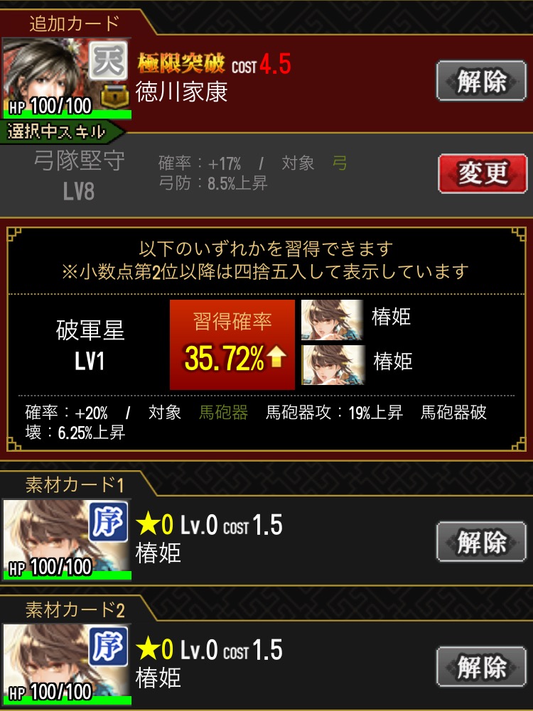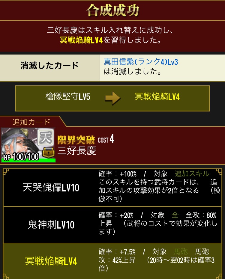 →初期スキルは合流攻撃に対して発動率100%、上昇率30%と超安定スキル
