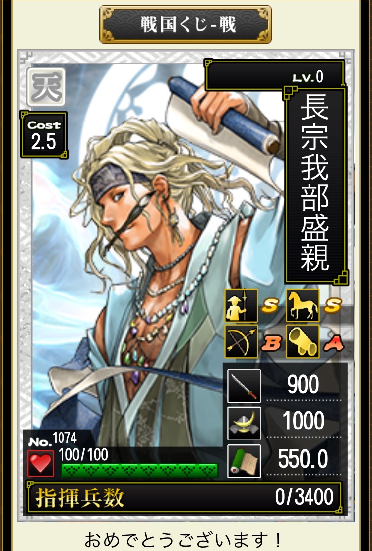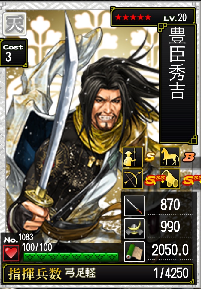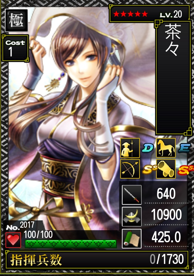 →コスト0の童を除いた全武将中、お市さんはもっともコスト比がいい武将。