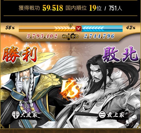 個人戦績、合戦結果、上位同盟攻略具合はこちら